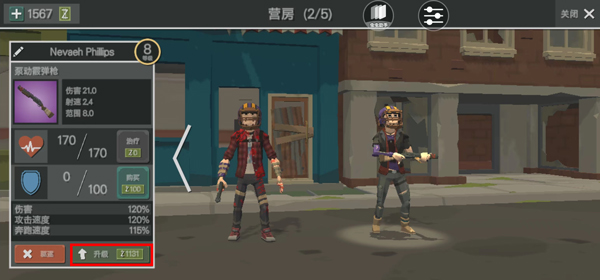 7、每位角色都可以进行升级,枪械等武器装备亦可强化;