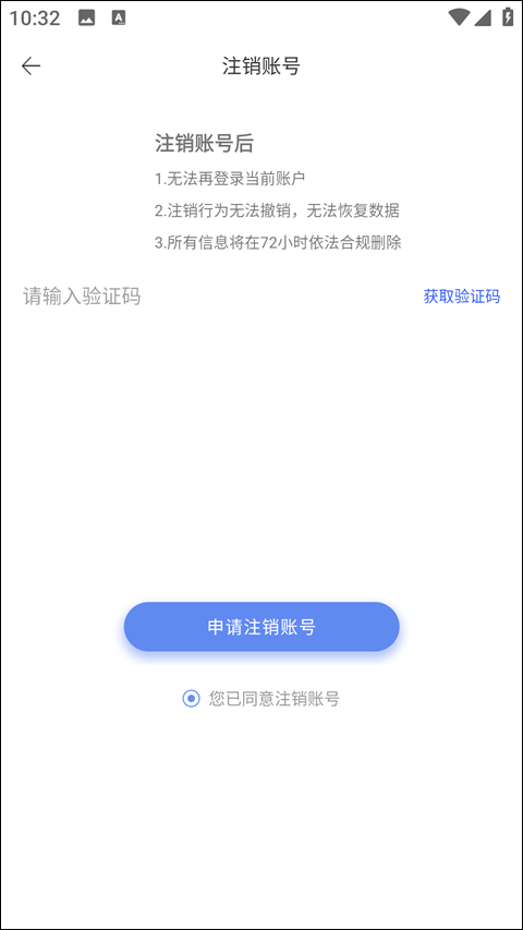 操作步骤:点击我的-头像右边的小箭头-注销账号-获取验证码-然后申请注销即可
