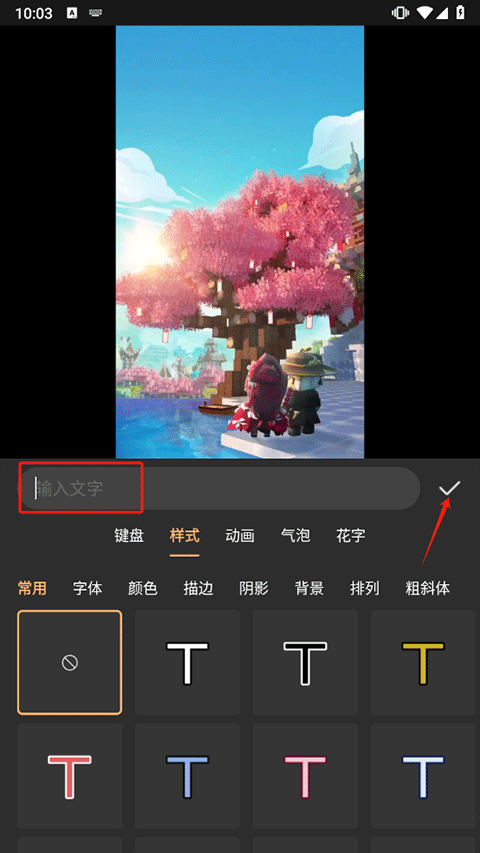 4、然后输入你的字幕,同时还可以对你的字幕更换样式、动画、气泡和花字