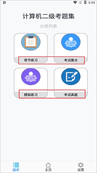 计算机二级考题集app是一款计算机二级考试学习软件,让用户可以通过手机去练习考试试题。软件包含了章节练习、考试要点、模拟练习、历年考试真题,模拟考试等几大学习模块,让你随时随地都能够在线刷题的加强用户的记忆,这样可以有更多的时间去记忆每个重要知识点,便于顺利的通过考试难关。该软件全国各地需要参加考试的用户都适合使用,模拟考试可以说是整个软件的重点,在这你可以体验到真正的考试效果。计算机二级考题集软件不但模拟了考试的题型题量和考试时间,让用户在考完之后随时可以查看测试结果,了解自己能力对自己的不足之处得以加强,需要参加计算二级考试的伙伴朋友快来下载吧。