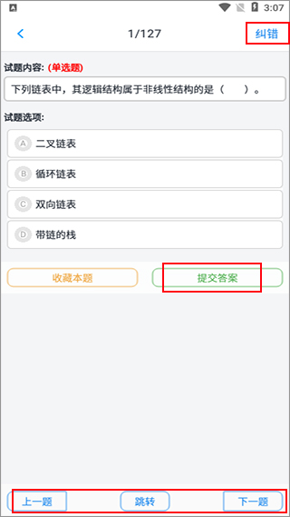 3、进入做题页面,即可点击右上角的纠错键进行提意见;