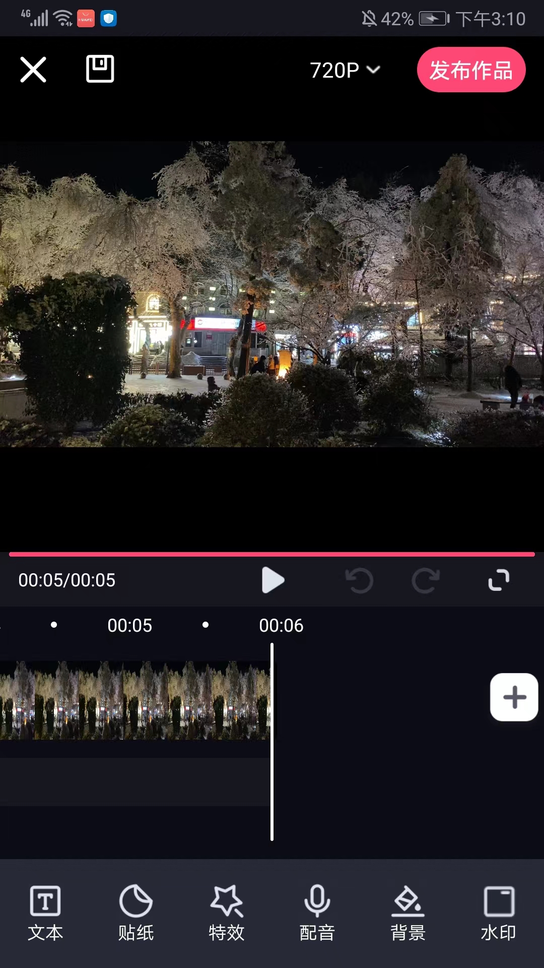 4、在发布前,我们可以通过下方的文本、贴纸、特效、配音、背景等水印等功能选项进行视频的编辑和美化,