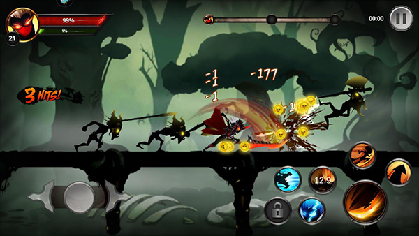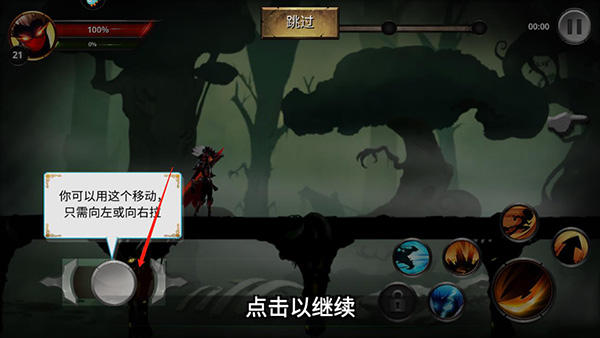 2、游戏采用经典的动作格斗操作方法,利用左手边这个按钮可以移动,只需要向左或向右拉;