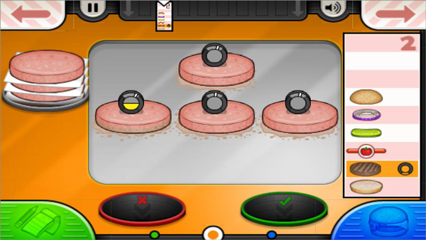 2、到烧烤台煎肉饼,肉的熟度是根据指针提示的,达到要求才行;