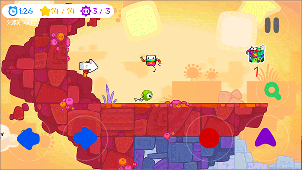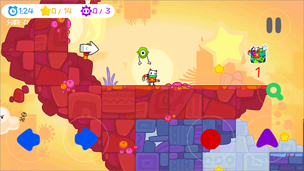 游戏能够带给玩家卡通欢乐趣味,玩家需要控制着一只可爱的带有彩色围巾的角色在奇幻的世界中冒险