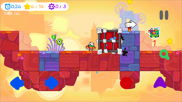 2、凯奇大冒险游戏关卡设计的非常巧妙,简单易懂的游戏操作!