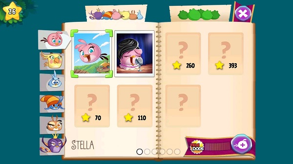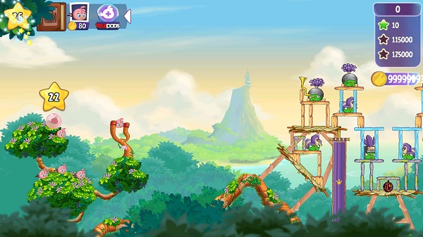 本作依然采用了三星评级方式,使用的小粉鸟数量越少,获得的成就也就越好。当然,没有一些新鲜元素自然不会吸引玩家。游戏中每种颜色的小鸟都有自己的看家本领,而名字的设定,比如思黛拉、薇璐等也会让玩家感觉更有归属感,对游戏中的角色有好感。思黛拉的特殊能力就是弹射(在关卡1-3出现),在飞行过程中,玩家只需长按弹射的点一段时间,思黛拉就可以探过来,并产生反弹效果,造成更大规模的杀伤力。