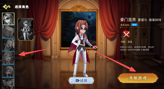 2、从四名初始角色中选择你喜欢的作为通关挑战的人物;