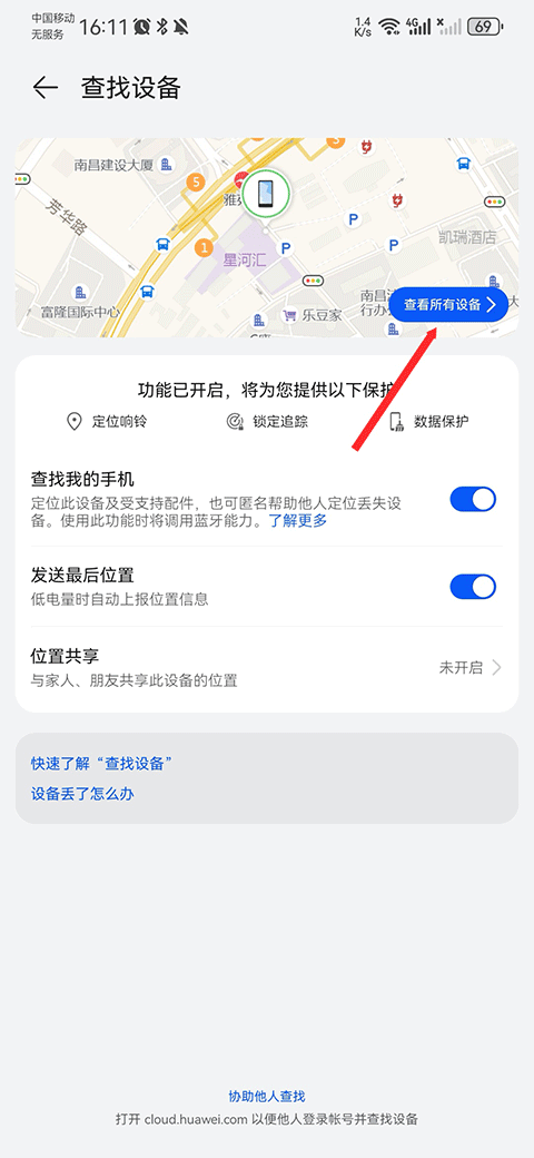 开启方法:打开【华为帐号】-【云空间】-【查找设备】-开启“查找设备”