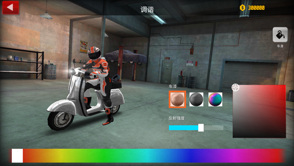2、点击自定义,玩家可更换摩托车的颜色、喷漆,以及其配件;