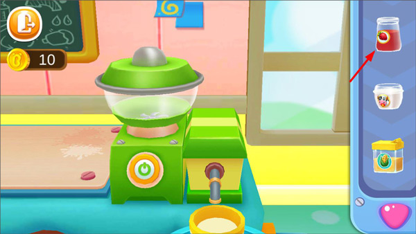 2、底料搅拌好之后,通过机器放到冰箱,玩家需要给雪糕添加各种果酱开启搅拌;