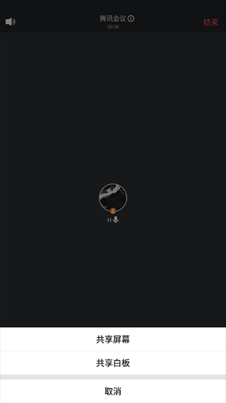 2、出现操作选项,共享屏幕和共享白板,因为需要播放PPT,所以选择【共享屏幕】选项。