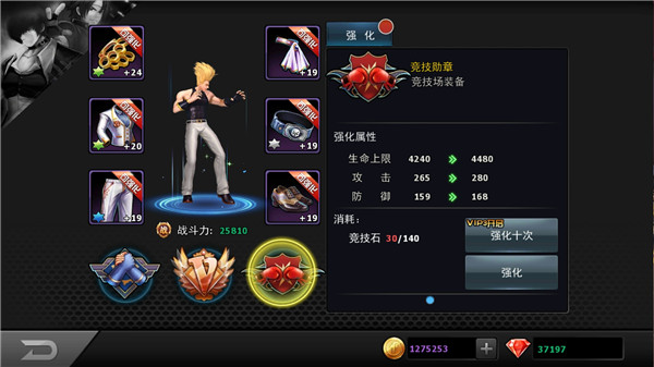 副本中可以掉落装备,然后装备在人物身上,一共有6个部位,这6个装备可以强化和升星来增加属性。