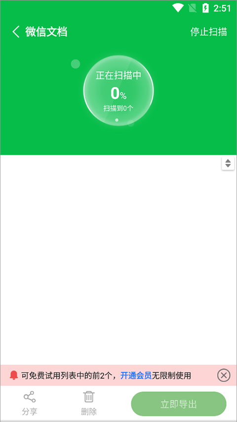 2、此时应用会将微信中所有的文档进行深度搜索