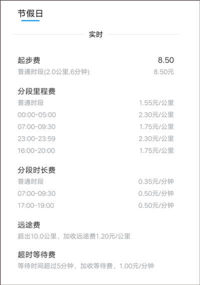 3、在节假日时,及时用车app快车实时用车价格如下方式计算: