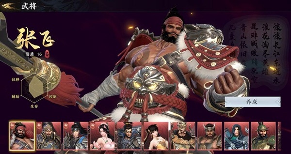 张飞的被动技能【狂暴之力】可以使张飞生命低于40%时进入狂暴状态,获得8%的伤害加成和受伤减免效果,并且每额外再次降低10%生命,会继续附加2%的伤害加成及受伤减免效果,在较低生命值的情况下其作战能力会极大增强。张飞的无双技【毁天灭地】,可凭借其大攻击范围,高伤害,快速起手的特点来快速清理周围敌人,作为副将使用时效果奇佳。