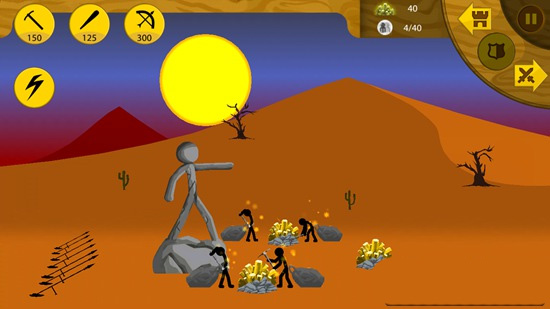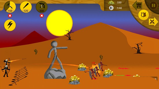 2、有足够的矿石,就能点击攻击类的火柴人,派遣它们去摧毁敌人的基地。