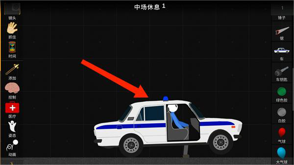 3、然后点击火柴人将他移动到车里面,这样就可以开车了。