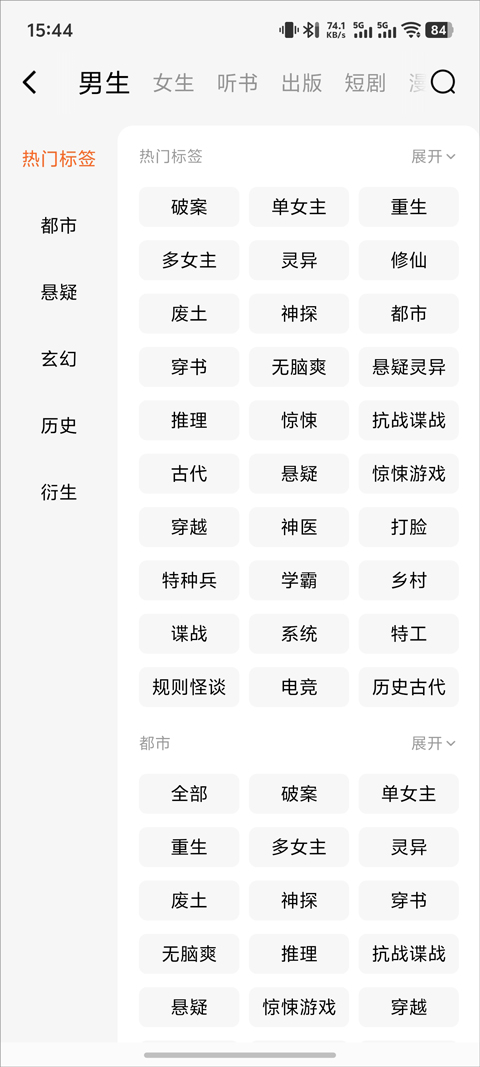 相比于主页的大范围分类,在此栏目中有着即为详细的分类标签,其中包括动漫、二次元、重生、玄幻、系统等超多详细分类,用户可根据自己的需求选择