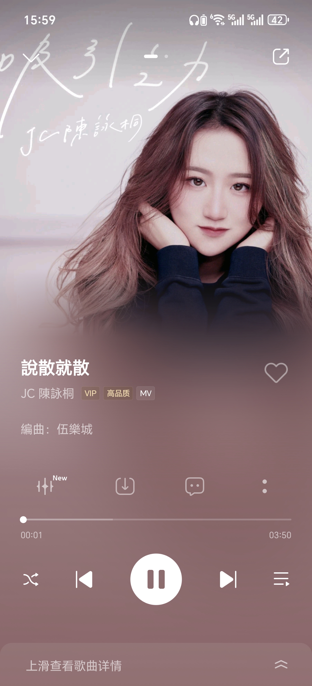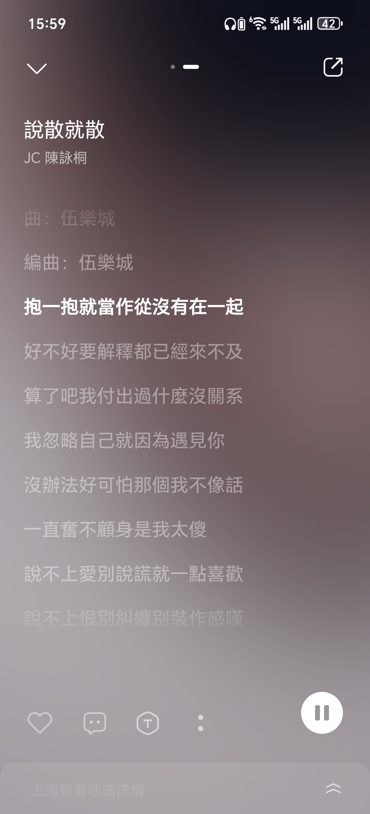 3、右滑屏幕还可查看歌曲歌词;