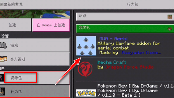 若只想在单个地图内使用,在地图的设置菜单内找到资源包选项卡,激活即可;而附加包需要把行为包和资源包都激活,并且大部分附加包都是需要开启实验玩法才可以正常使用的。