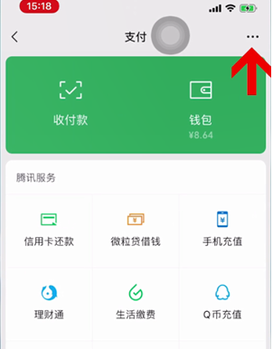 1、首先打开微信app,依次点击我的-支付,点击页面右上角三个点标志。