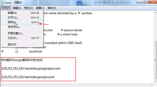 然后可以使用记事本或者文本编辑器打开系统hosts文件,上面有介绍文件地址在哪,然后在文件里输入以下文字,并保存: