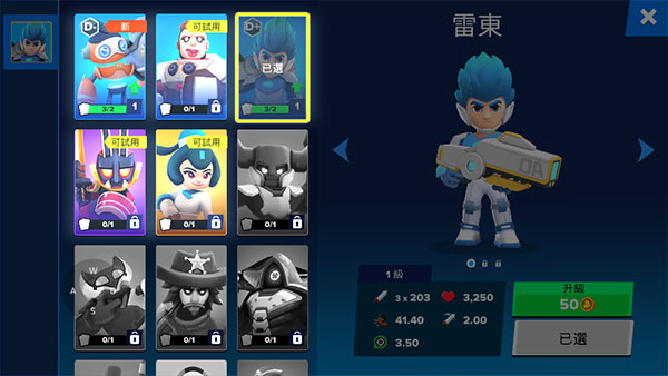 4、这里也拥有很多的角色可以解锁,每个角色都有不同的属性,你还可以对其进行升级培养;