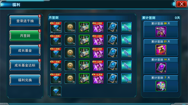 2、每日签到领取大量奖励,累计签到还能领取稀有奖励。