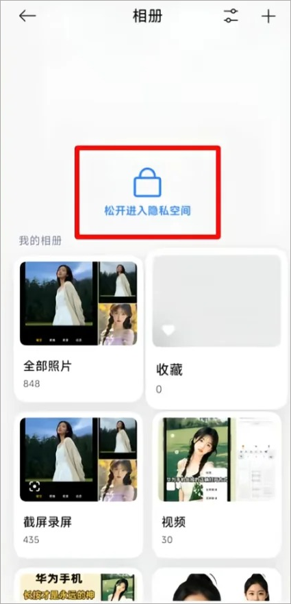 松开手指,系统会提示你输入私密相册的密码或使用指纹解锁,输入后就能看到你的私密照片了。