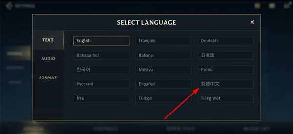 英雄联盟激斗峡谷台服最新版本怎么设置成中文?