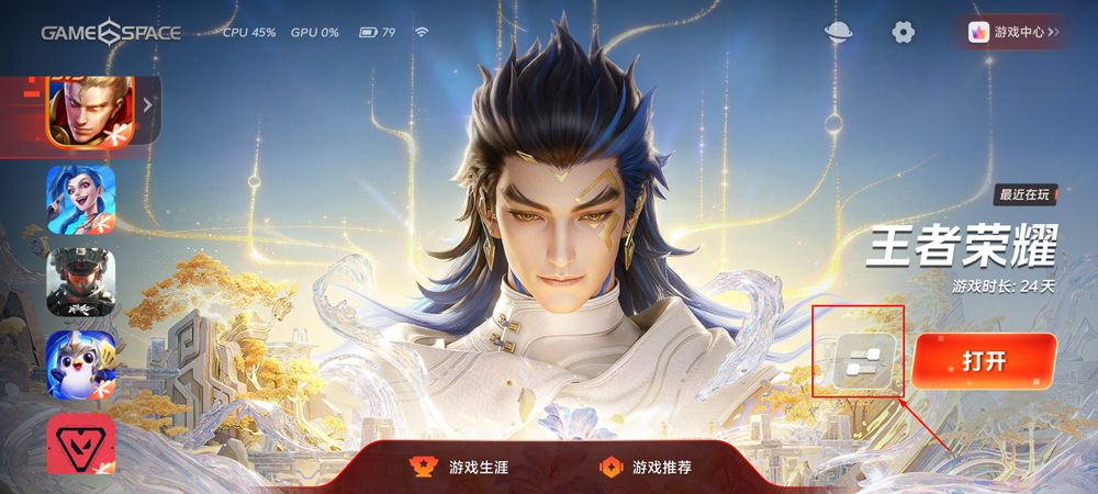1、进入vivo游戏空间后,选择一个要更换皮肤的游戏,点击“打开”旁的按钮;