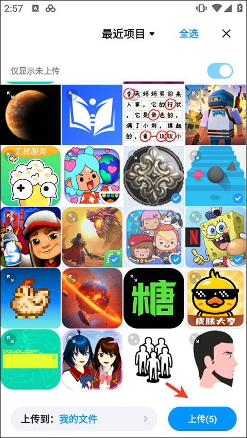 3、这里以照片为例,选中我们需要上传的照片,点击上传。