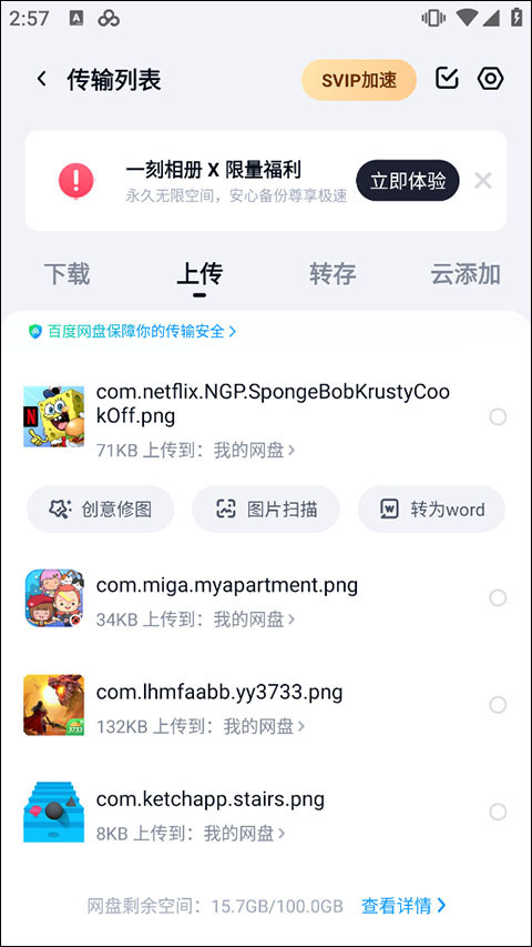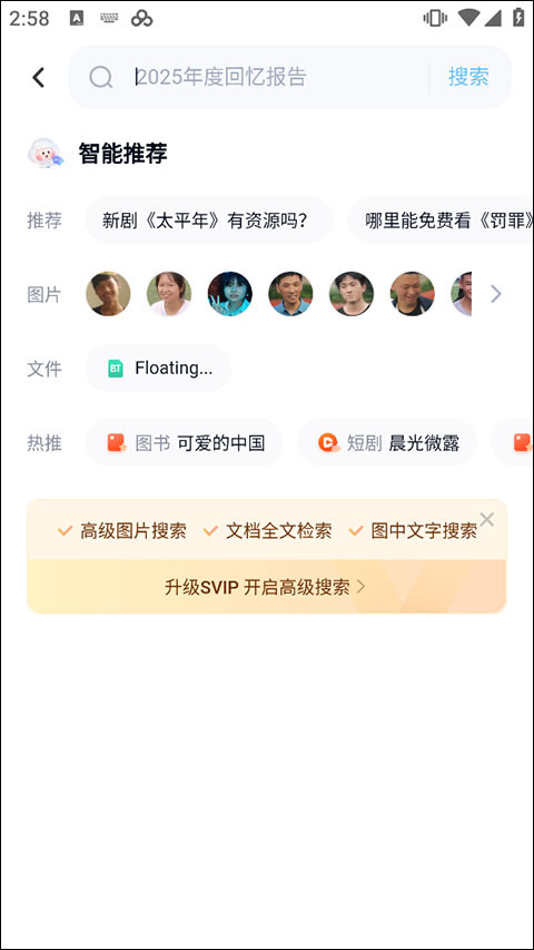 百度网盘不仅能实现图片智能分类、自动去重等功能,还能以图搜图,在海量图片中精准定位目标。
