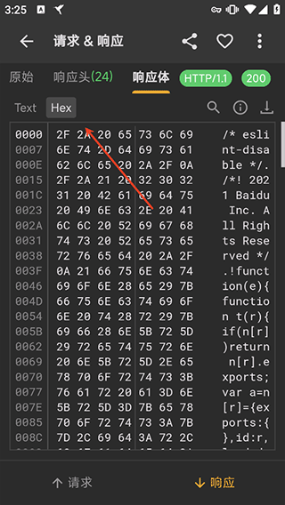 10、然后就可以点击自己的数据去拿响应体内的内容了,并且在查看数据时可以切换成文本格式或hex等视图模式下进行查看