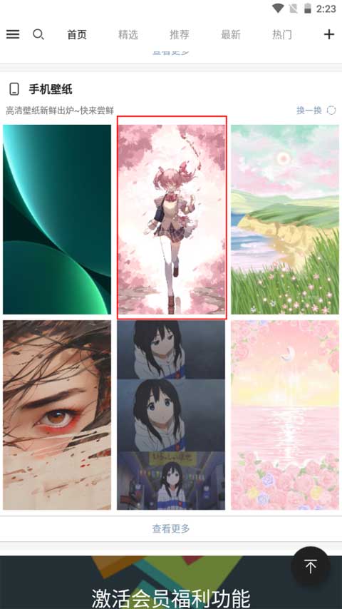 1、打开app并默认进入到【首页】,选择自己喜欢的手机动态壁纸并点击图片。