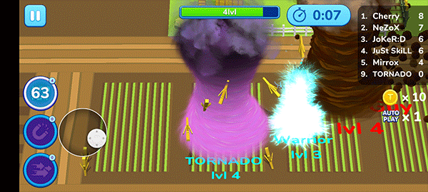 3、吞下其他龙卷风可以很快升级,但要小心远离比你大的龙卷风。小心吞下所有东西。