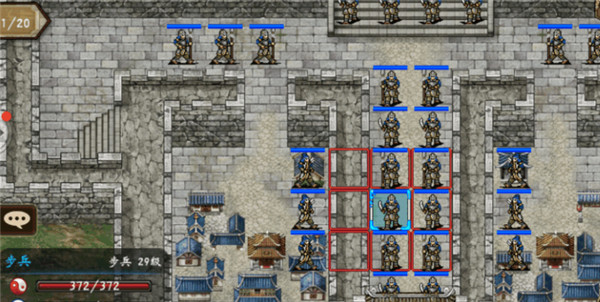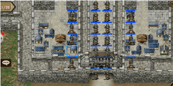 六回合时除过前排以外所有人退至城楼,如下图: