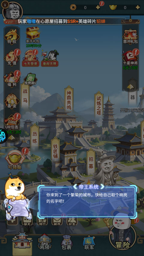 2、上线即送 UR 千抽,顶级神将任选