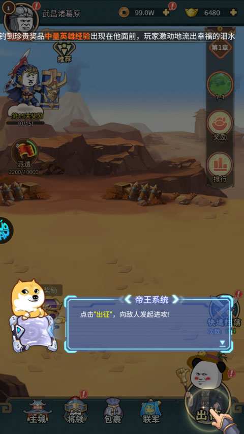 4、点击“出征”,向敌人发起进攻;