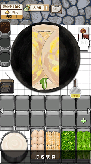 1、你作为煎饼果子摊的摊主,游戏中将面临各种要求刁钻的客人,什么“煎饼果子不要煎饼”,“煎饼果子加一百个鸡蛋”等等,然后根据客人的需求做出让他们满意的煎饼。