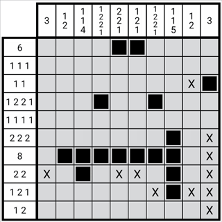 数字的准确位置一般可以由一排的格数和数字推出,有时也需要用到已经确定的正格与负格,只有极少数的关卡需要同时用到两排以上的信息。这也使得其的难度不是那么的高,本系列致力于帮您从刚入门的新手迅速成为能推理大多数图形的高玩。
