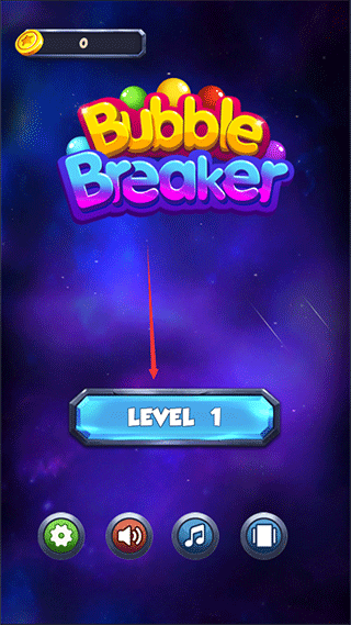 1、进入Bubble Breaker游戏后,点击“LEVEL 1”即可接着之前的关卡继续游玩;