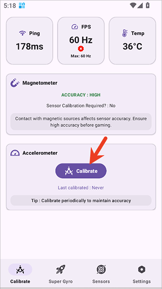 2、进入设置界面,找到陀螺仪校准选项,对您的设备传感器进行精确校准