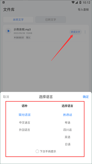 4、最后点击“转成文字”选择语言即可轻松转换;