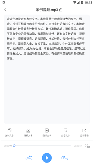 5、等待数秒即可得到转化出的文字内容,支持一键复制、翻译、分享。