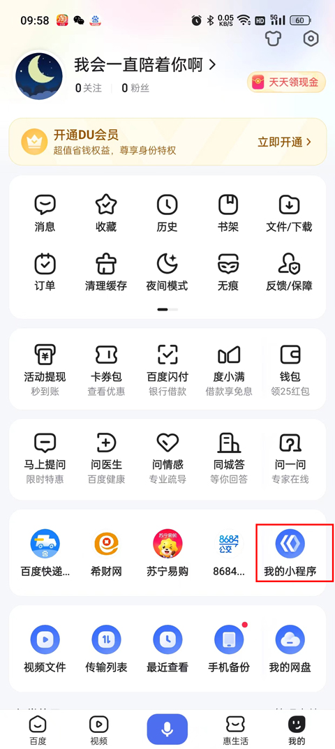 2、在我的页面的下方有一个我的小程序,找到它并进入【我的小程序】;
