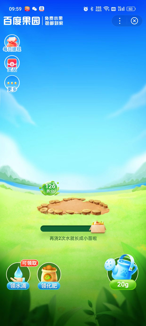 进入到百度果园当中,你可以在线种植树苗,可以给树苗浇水,完成任务领取化肥,领取水滴,每日签到也可以领取化肥,当小树苗长大一定阶段之后,就可以获得现金余额,新人还可以享受一次无门槛提现福利,软件后续还可以免费领取水果,只要你有足够的耐心,最重要的是,软件还支持邀请好友一起领取福利,感兴趣的用户可以来本站下载体验。