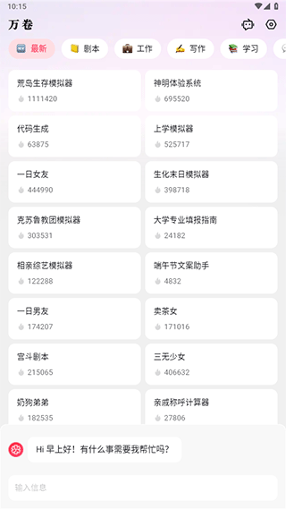 万卷app是一款好用的ai写作应用,旨在为用户提供高效的写作辅助,可以根据你的要求,自动的生成ai文字作品,输入关键字,就可以快速生成文字内容。