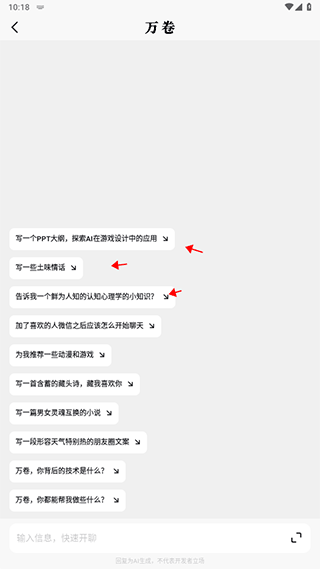 此外,万卷app还可以根据用户的输入内容,智能推荐相关关键词、句型、段落等,大幅提高写作效率,同时还提供了丰富多样的模板,支持各种不同格式不同类型的文章,包括推广软文工作周报以及营销活动方案等,且平台上的工具全部都是免费提供的,用户不必有任何的顾虑生成的文章。
